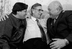 | С Геннадием Хазановым и Николаем Озеровым за несколько дней до смерти, 1990 год. «Круг яшинского общения не замыкался на футболистах» |