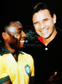 | С легендарным Пеле. «Впервые они встретились на шведском чемпионате мира в 1958 году, где Яшин произвел на совсем юного Пеле огромное впечатление: «Чудо-вратарь» |