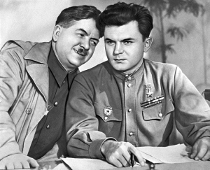 | Степан Каюков и Сергей Бондарчук на съемках фильма «Кавалер Золотой Звезды» Юлия Райзмана, 1951 год |