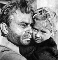 | Культовая картина Сергея Бондарчука «Судьба человека» по рассказу Михаила Шолохова, в которой артист сыграл главную роль Андрея Соколова. С Павликом Борискиным (Ванюшка), 1959 год |