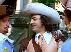![]() Роль д’Артаньяна в фильме Юнгвальда-Хилькевича сделала Боярского кинозвездой, как, собственно, Смехова (Атос) и Смирнитского (Портос) |