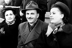 ![]() Мальвина Швидлер, Юрий Тимошенко (Тарапунька) и его жена Ольга Кусенко на Республиканском стадионе |