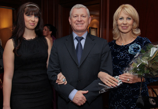 Тамада вечера заместитель министра обороны Борис Андресюк, как всегда, окружен красавицами - дочерью Катей и супругой Ларисой
