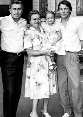 | Олег Блохин с отцом Владимиром Ивановичем, матерью Екатериной Захаровой и дочерью Ирочкой, 1984 год |