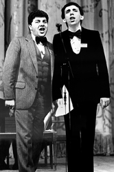 - А вот это правда. Он длился очень долго, потому что люди смеялись после каждого предложения. Особенно в том месте, где говорилось о повернутых вспять реках, которые "с лозунгами, транспарантами и криками "ура!" текут мимо празднично украшенных трибун", хлопали минуты две, в зале творилось что-то невообразимое! В телевизионной версии многое убрали, и правильно сделали - уж слишком было бы затянуто. Ощущение в зрительном зале одно, а когда сидишь дома перед телевизором - совсем другое. И так было понятно, насколько хорошо его принимают. Но все равно вместо четырех минут он длился семь или восемь, даже в телевизионном варианте.