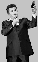- Сегодня вообразить украинский теле- и радиоэфир без вас невозможно. Как ни включу телевизор, везде вы: то с мамой в селе, то со Снегурочкой у сугроба, то с очаровательными девушками топлесс, то на сцене Национального дворца "Украина". По-моему, даже наш уважаемый Президент появляется на телеэкране реже, чем Михаил Поплавский...