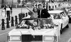 Всего этого, как выяснилось впоследствии, Наташа даже не расслышала. Дабы принять поздравления поклонников, она на свой страх и риск вышла из машины и пошла в народ в сопровождении дружков в бабочках и лаковых штиблетах и подружек в одинаковых розовых платьях. Но оказалось, что вернуться из народа не так-то просто. Пока охранники пытались проложить дорогу обратно, а мы - спасти свои оттоптанные подолы и лаковые туфли, большинство лимузинов куда-то исчезло. Прижатая возбужденной толпой к дверям экипажа новобрачных, куда, увы, могли поместиться только они двое, я успела всерьез запаниковать. Мелькнула мысль: "Вот он, мой сенсационный материал, который я, судя по всему, буду писать лежа в больнице. Жених и не веста уезжают, а их свидетелей раздирают на сувениры!". К счастью, Бог миловал... Нас кое-как вытащили. И машины нашлись: просто, чтобы разглядеть их в таком многолюдье, нужно было встать на плечи друг другу.