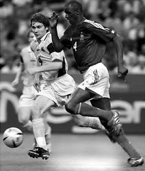 В конце концов, выпадание из коллективной игры то одного, то двух-трех игроков сборной Украины и дало перевес англичанам. Хотя они и сами не до конца освоили новые для них принципы игры, но возвращались на позиции в обороне куда исправнее наших. Жаль, что команда Блохина допускала осечки в том элементе тактики, который известен со времен Лобановского. У Валерия Васильевича это называлось "сыграть от своего игрока" (или, по аналогии, от своей зоны ответственности), то есть устремиться по ситуации в атаку единолично или в коалиции, бросив своего подопечного, чтобы придать атакующим действиям своей команды элемент неожиданности, создать численное превосходство над обороняющимися. Но при этом игрокам линий защиты и полузащиты, а также форвардам, которым вменяется в обязанность прикрывать какую-либо зону в случае атаки соперника, следовало возвращаться назад немедленно после потери мяча. В Ньюкасле у нас были с этим проблемы. А когда команда подустала (это случилось намного быстрее, чем можно было ожидать), всю нашу тактику вырубил, как подачу электроэнергии обрыв кабеля, чрезмерный брак в передачах мяча. И дело закончилось разгромом. Тем более что массовые замены второго тайма опять не пошли на пользу нашей сборной.