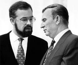 - Ну, с председателем правительства, председателем Верховного Совета все ясно. Первый секретарь - хозяин. Кто это? Безусловно, Президент. А главу Администрации Президента, на котором лежит кадровая работа: назначения, награды, политическое сопровождение, - все время сравнивали (это, скажем так, отчасти мне льстило и немного смешило) со вторым секретарем ЦК Компартии Украины. Поэтому я могу сказать, что в 96-м году, когда был подписан указ о моем увольнении с должности главы Администрации Президента (причем меня в Москву вице-премьером никто не звал!), я пережил те же моменты душевного волнения - или слома, как вы говорите, - какие чувствовали Петр Ефимович и Владимир Васильевич. Просто возраст у меня другой, страна изменилась, система власти стала многопартийной.