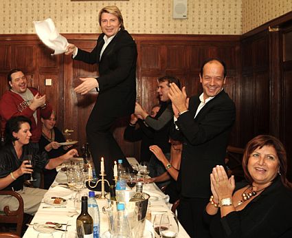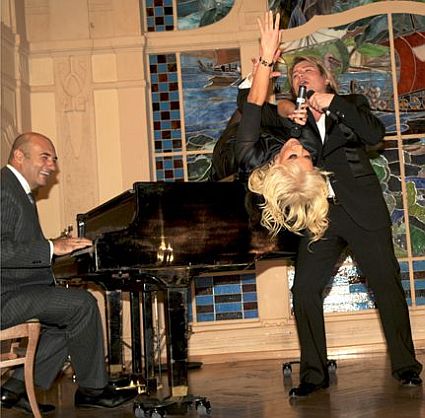 ![]() На концерте в Ледовом Дворце Николай со знаменитой испанской оперной примой Монтсеррат Кабалье и ее дочерью Монситой исполнил арию из популярного бродвейского мюзикла «Призрак оперы». В последнее время пресса живо обсуждает роман Баскова и Монситы, и, словно подтверждая слухи, она вышла на сцену в белом свадебном платье от Валентино. Басков официально разведен, Монсита тоже разошлась с мужем. Вместе они проводят много времени, ездят на гастроли, а недавно в гостинице на двоих заказали один номер ![]() Алла Пугачева — Валентину Юдашкину: «К черту диету! Как тут все вкусно!». Что интересно, в Санкт-Петербург Алла Борисовна приехала одна, хотя приглашен был и ее постоянный спутник Максим Галкин ![]() Нелли Кобзон: «Танцуют все!» ![]() Монтсеррат Кабалье — Иосифу Кобзону: «Может, бокал вина?» ![]() Клара Новикова: «Ой, кажется, зуб сломала!» ![]() Мама именинника Елена Николаевна: «Сыночек, какой ты у меня все-таки гениальный!» ![]() У рояля — Игорь Крутой, на рояле — Таисия Повалий, у Таисии Повалий — Николай Басков... ![]() Телеведущая, модель и актриса Олеся Судзиловская и ее любимый мужчина бизнесмен Сергей. 34-летняя Судзиловская беременна, и впервые в «интересном» положении она вышла в свет на сольном концерте Баскова. После родов Олеся намерена сыграть свадьбу с отцом своего ребенка, а пока на съемочной площадке «Ленфильма» разыграла историю красивой любви с Николаем Басковым в совместном клипе ![]() Александр Швец, Игорь Лихута и Дмитрий Гордон подпевали имениннику хором ![]() Светлана Моргунова: «Ну, Колька дает!» ![]() Родители именинника: папа — Виктор Владимирович, заместитель начальника инспекции Счетной палаты России, полковник Вооруженных сил (был заместителем командира дивизии, окончил Военную академию Генерального штаба), и мама — Елена Николаевна, учительница математики. «Именно в этот день у моих родителей 33 года совместной жизни, — сказал Коля, — и зачат я был именно в Санкт-Петербурге (тогда Ленинграде) в гостинице «Октябрьская», где они провели медовый месяц. Этот концерт — подарок моим родителям» ![]() Андрей Малахов активно ухаживал за «Мисс Вселенная-2002» Оксаной Федоровой, несмотря на то, что она пришла с мужем — немецким бизнесменом Филиппом ![]() Музыкальный обозреватель «Московского комсомольца» Артур Гаспарян и модный стилист Сергей Зверев. Вскоре на телевидении стартует новое шоу Зверева «RUчная работа», в котором Король Гламура выведет всех представителей шоу-бизнеса на чистую воду ![]() После исполнения еврейского хита «7.40» непьющий Басков заявил: «Все, сегодня напьюсь — это самый счастливый день в моей жизни. Дайте водки!» — попросил он официантов и взгромоздился на стол |