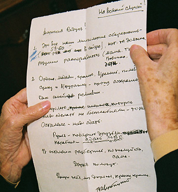 | Рада Гавриловна держит в руках завещание, которое Владимир Васильевич написал задолго до смерти Фото Александра ЛАЗАРЕНКО |