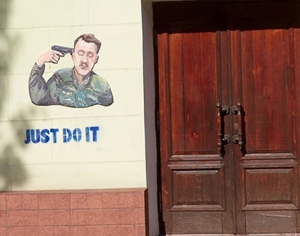 | Карикатура на одного из лидеров «народного ополчения» Игоря Гиркина-Стрелкова с надписью: «Просто сделай это» |