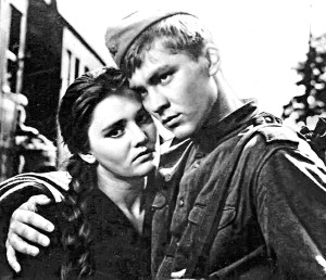 | Первая сыгранная роль в кино — Алеши Скворцова — принесла Владимиру Ивашову всесоюзную славу. С Жанной Прохоренко, «Баллада о солдате» |