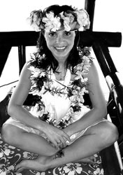 Стоит Лиля на берегу, ждет Тимофея. А вот и он. Взглянув на него, она не удержалась и рассмеялась. Он был в белой юбке и весь в татуировках - так таитяне отмечают отличившегося жениха. У нее, кстати, тоже есть татуировка - на левой ноге. Она сделала ее пять лет назад, попав под тлетворное влияние Запада. Весит невеста сейчас 47 килограммов, Тимофей поднимает ее, как пушинку. И еще: она уже не блондинка, а брюнетка.