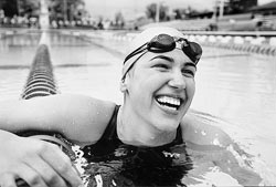 - Это произошло совсем незаметно. С каждым годом соревнования становились серьезнее, и я начала осознавать ответственность за результат. Не могла подвести людей, которые за меня болели... Наверное, определилась году в 96-м. Тогда в первых серьезных соревнованиях - на юношеском чемпионате Европы в Копенгагене - я заняла второе место, хотя другие участницы были на год старше. Через год в Глазго плыли те же старшие девочки, но я уже выиграла...