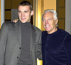 - Ты знаешь, дебют в качестве модели дался мне тяжело. Во-первых, на подиуме очень скользко, поэтому я все время думал о том, как бы там не упасть, а во-вторых, кроме прессы, присутствовало множество интересных людей: Шон Коннери был, Брэд Питт, Джордж Клуни... Организаторы устроили очень красивую презентацию, а когда сфилата (по-итальянски это означает показ) закрылась, повесили сзади экран и на нем показали флеш - нарезку из забитых мною мячей. Потом был мой красивый выход, и, думаю, все удалось - во всяком случае, мне было и самому интересно.