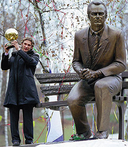 | «Лобановский был неординарной личностью. Будучи игроком «Динамо», я всегда чувствовал и внимание Валерия Васильевича, и заботу». У памятника великому тренеру на киевском стадионе «Динамо» с «Золотым мячом», который Шевченко получил, играя за «Милан» |