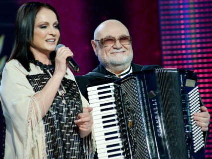 Стильная вышиванка Софии Ротару удачно сочеталась с бело-голубым «зенитовским» шарфиком Михаила Боярского
