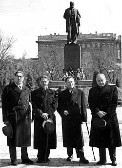 | Юрий Лавров, режиссер Николай Соколов, Моисей Розин и Виктор Халатов, Киев, парк Шевченко, начало 60-х |