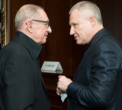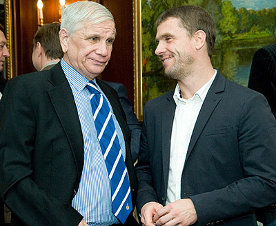 Легендарный игрок и тренер Олег Базилевич беседует с Почетным президентом Федерации футбола Украины Григорием Суркисом