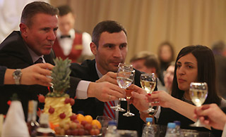 | Глава Национального олимпийского комитета Сергей Бубка, Виталий Кличко и Яна Шемякина во время церемонии чествования лучших украинских спортсменов и тренеров всех поколений «Спортивное созвездие Украины-2012». Киев, 25 декабря 2012 года Фото УНИАН |