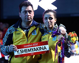 | С супругом тренером по фехтованию Олегом Лопатенко. «Если я выиграла олимпийское золото, то приложу все усилия, чтобы выиграть еще одну медаль — за семейную жизнь» |