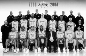 ![]() Клуб "Лейкерс" - звезды мирового баскетбола. №14 - Слава Медведенко, справа от него - Коби Брайант, прямо перед Славой - Шакил О'Нил |