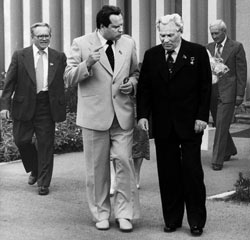 ![]() Константин Черненко (справа) страдал астмой, говорить ему было трудно, поэтому он в основном слушал |