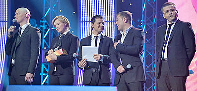 В этот вечер «квартальщики» отвечали и за сценарий, и за ведение, и даже за поздравления от первых лиц страны, хотя «вообще-то, у нас в стране не демократия, а demo-версия».