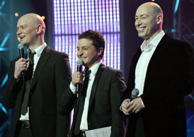 «Любi друзi! - вещал «квартальный» Ющенко. - Як вiдомо, бiда не приходить одна. От i я сьогоднi прийшов з оцими...». «Оцими», естественно, оказались Тимошенко и Янукович. «Любi мої! Сьогоднi у нас два свята - 15 рокiв улюбленiй газетi i 10 рокiв - улюбленiй програмi, тому давайте одразу про головне, - заявила Юлия Владимировна, она же Елена Кравец. - Мiсцевi вибори пройшли вкрай недемократично!». - «Да хватит вам про эти выборы, - успокаивал Александр Пикалов голосом нынешнего Президента. - Давайте просто выпьем за Диму Гордона - нормального донецкого парня!». - «Вiкторе Федоровичу, як же можна не знать, шо Гордон - не з Донецька?». - «Ка-а-ак? Нормальный парень - и не из Донецка?».