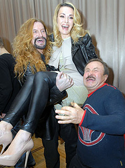 Из концертного зала дворца «Украина» звезду отчаянно не отпускали, вызывая на бис, а в банкетном буквально разрывали на части. К «хеннесси», фруктам, помидорам черри, фаршированным сыром, а также канапкам с ветчиной, красной икрой и салом с чесноком, которые так удачно воспела Сердючка, артист не притронулся: гости слишком сильно хотели сфотографироваться с ним на память.