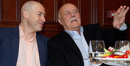 Дмитрий Гордон и Станислав Говорухин наслаждались приятным обществом и заодно обсуждали редакционные дела
