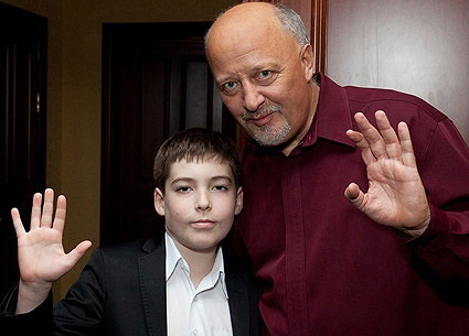 Младший сын именинника 11-летний Лев и лысый, но уже не босый символ украинской эстрады 80-90-х Андрей Миколайчук