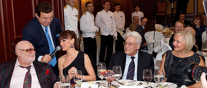 В этот вечер Иосиф Кобзон не только много пел, но и, как всегда, остроумно шутил. Дмитрий Гордон с женой Алесей, Станислав Говорухин, Нелли и Иосиф Кобзон