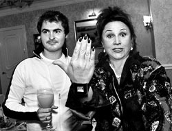 Непонятно, что больше смутило 30-летнего красавчика-танцора - эти слова Евгения Гора или его горящий взгляд. Но народный артист России, не успев утереть со лба трудовой пот, тут же скрылся в гримерке. Ведь он заметил, что главная казачка российской эстрады стоит в двух шагах и все слышит...