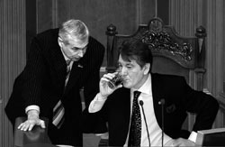 - Не только от донецкой группы. Как наркоман, - я не в прямом смысле употребляю это слово - Кучма стал зависим от тех, без кого был никем. С оппозицией он уже настолько испортил отношения, так порвал с ней контакты, что даже в парламенте не мог появиться. И это - имея свою фракцию, бiльшiсть! Парламент был для него враждебным лагерем. Вспомните конец: люди уже не верили в его слова, в его президентскую власть, и он метался: выбирал между донецкими и Медведчуком, не имея, по сути, на кого опереться...