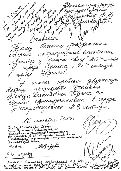 Вообще, унизительных для труппы ситуаций за годы конфликта с Сумской хватало. В свое время Ольга безумно мечтала сыграть баронессу Штраль в лермонтовском "Маскараде" - ярком масштабном действе, где задействованы 50 человек плюс балет. Так сильно об этом мечтала, что с 20 по 23 сентября 2004 года, когда шли генеральные репетиции "Маскарада", она обратилась с просьбой сыграть антрепризу "Синьор из высшего общества" вне Киева, а 23 (за день до премьеры!) отпустить ее "для проведения дружеской встречи Президента Украины Леонида Даниловича Кучмы со своими однокурсниками в городе Днепропетровске". Это при том, что замена Сумской в "Маскараде" изначально не планировалась - актриса репетировала без дублера и прекрасно осознавала, что худрук не сможет ей отказать в "проведении встречи Президента", учитывая особую важность мероприятия.