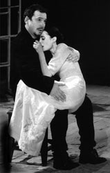 Сидевшая рядом Могилевская несколько раз возмущенно прошептала мне на ухо, мол, Стуруа, как грузин, плохо относится к женщинам, - это видно из его режиссуры невооруженным взглядом. И в чем-то, безусловно, была права. Наверное, в славянской трактовке Полоний и мог бы выносить Офелию, держа под пузо, как безвольную куклу. Но уж брезгливо толкать благородную девицу ногой под зад украинский король никогда бы не стал! Однако не исключено, именно по причине мужского шовинизма, женщины в спектакле Стуруа были наиболее похожи на зверюшек. И потому наиболее хороши. Животная естественность королевы, смахивающей на бездумно-счастливую домашнюю псинку, радующуюся, что у нее снова есть друг и хозяин, сама по себе объясняла раздор сына с матерью.