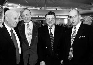 ![]() Владимир Горбулин, Евгений Евтушенко, Александр Ширвиндт и Дмитрий Гордон |
