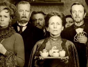 | Валентина Шарыкина, Владимир Емельянов, Ефим Копелян, Майя Булгакова и Анатолий Ромашин в дебютном фильме Сергея Соловьева по пьесе Максима Горького «Егор Булычов и другие», 1971 год |