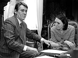 - Я и раньше была знакома с Виктором Ющенко. Когда его отправляли в отставку с должности премьер-министра, была креативным директором акции в защиту реформ и лично Ющенко. Не так давно мы встречались в Вашингтоне и Страсбурге... Он произвел на меня впечатление честного, верующего человека, на которого... можно влиять.
