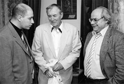 ![]() С Евгением Евтушенко и Дмитрием Гордоном. Фото Александр ЛАЗАРЕНКО |