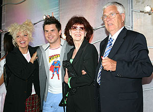 ![]() Юрмала-2005, "Новая волна": Лайма Вайкуле с обладателем Гран-при Интаром Бусулисом и Раймонд Паулс с женой Ланой |