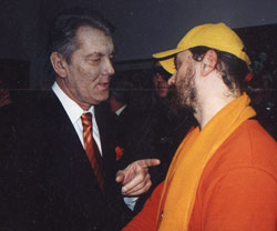 - В общем, не так уж все плохо - на этой жизнеутверждающей ноте мы и закончим. Сегодня я говорил мало, тем не менее провел одну из лучших своих бесед: ты все сделал и за себя, и за меня... Очень хочется, чтобы никто никому впредь не закрывал кляпом рот, чтобы можно было всегда говорить то, что думаешь. Желаю всем нам дальнейшего развития демократии, а лично тебе - успехов в творчестве, потому что прежде всего ты прекрасный художник, чьи картины украшают лучшие музеи и дома...