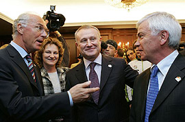 | С легендарным немецким футболистом и тренером, лучшим полузащитником XX века Францем Беккенбауэром и президентом Федерации футбола Украины Григорием Суркисом Фото PHL |