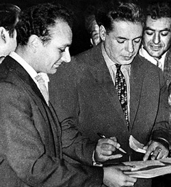 | Аркадий Райкин раздает автографы, слева — его лучший автор Михаил Жванецкий, начало 70-х |
