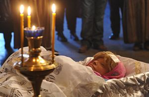 | Прощание с Натальей Кустинской в храме Спаса Нерукотворного Образа на Сетуни 17 декабря 2012 года. «Проводили ее в последний путь по высшему разряду, выбрав все самое лучшее и дорогое, а похоронили, как она и просила, на Кунцевском кладбище рядом с сыном» |