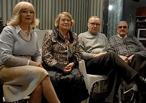 | Барбара Брыльска, Валентина Талызина, Андрей Мягков и Юрий Яковлев на съемках фильма Тимура Бекмамбетова «Ирония судьбы. Продолжение», 2007 год |
