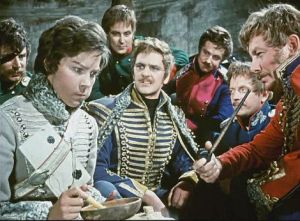 | Шурочка Азарова, она же корнет Азаров (Лариса Голубкина), и поручик Ржевский (Юрий Яковлев) в «Гусарской балладе» Эльдара Рязанова |