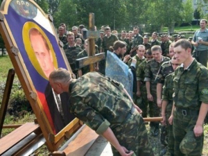 «Как вам пришла идея повесить икону Путина? - спросил я у настоятеля церкви отца Михаила». - «Когда наш живописец принес икону с ликом Путина в образе Христа, я не знал, что делать. Есть же канон, как что изображать. Надо было получить разрешение начальства. И я решил пока повесить ее в дальнем углу церкви, посмотреть, как будут люди реагировать. Уже на следующий день прихожане стали меня уверять, что икона чудотворная, что образ с ними разговаривает, велит покаяться в грехах и делать только добрые дела.